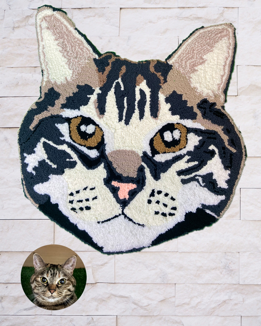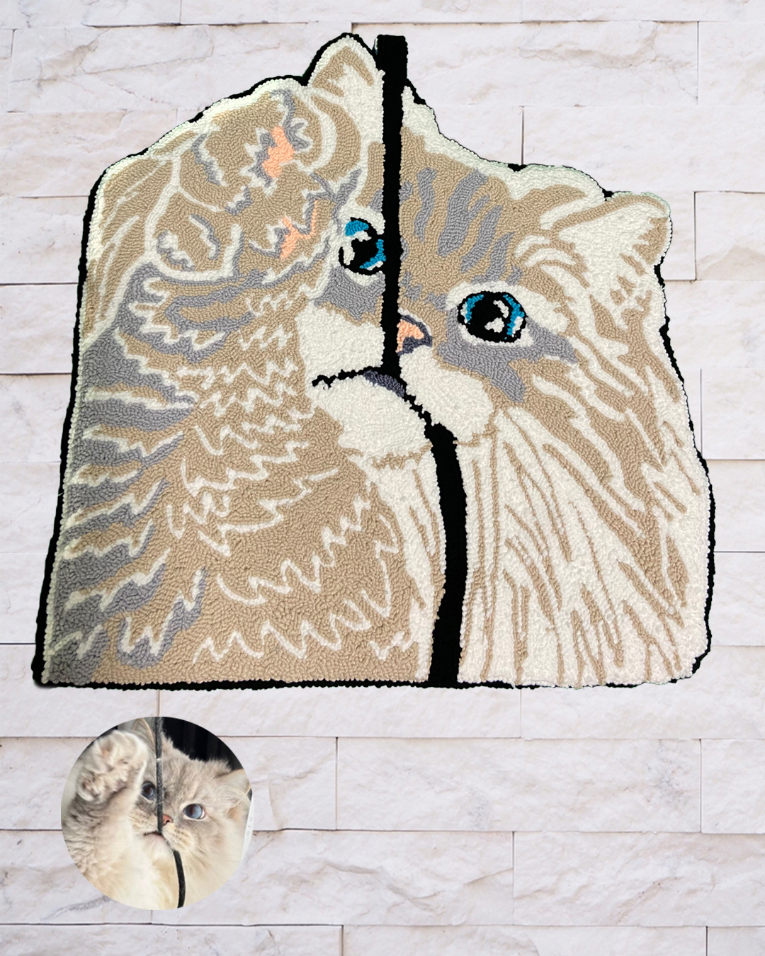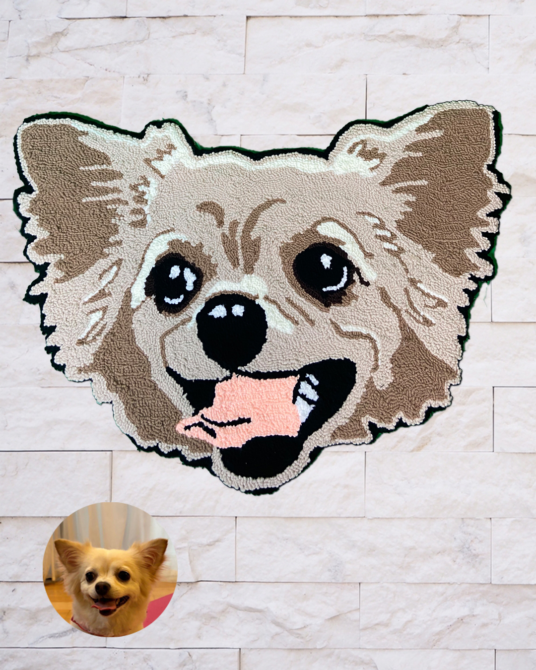 写真だけでは伝わり切らない「温かみ」を形にするため、タフティング技法を用い、熟練の職人が一点一点手作業で製作しております。